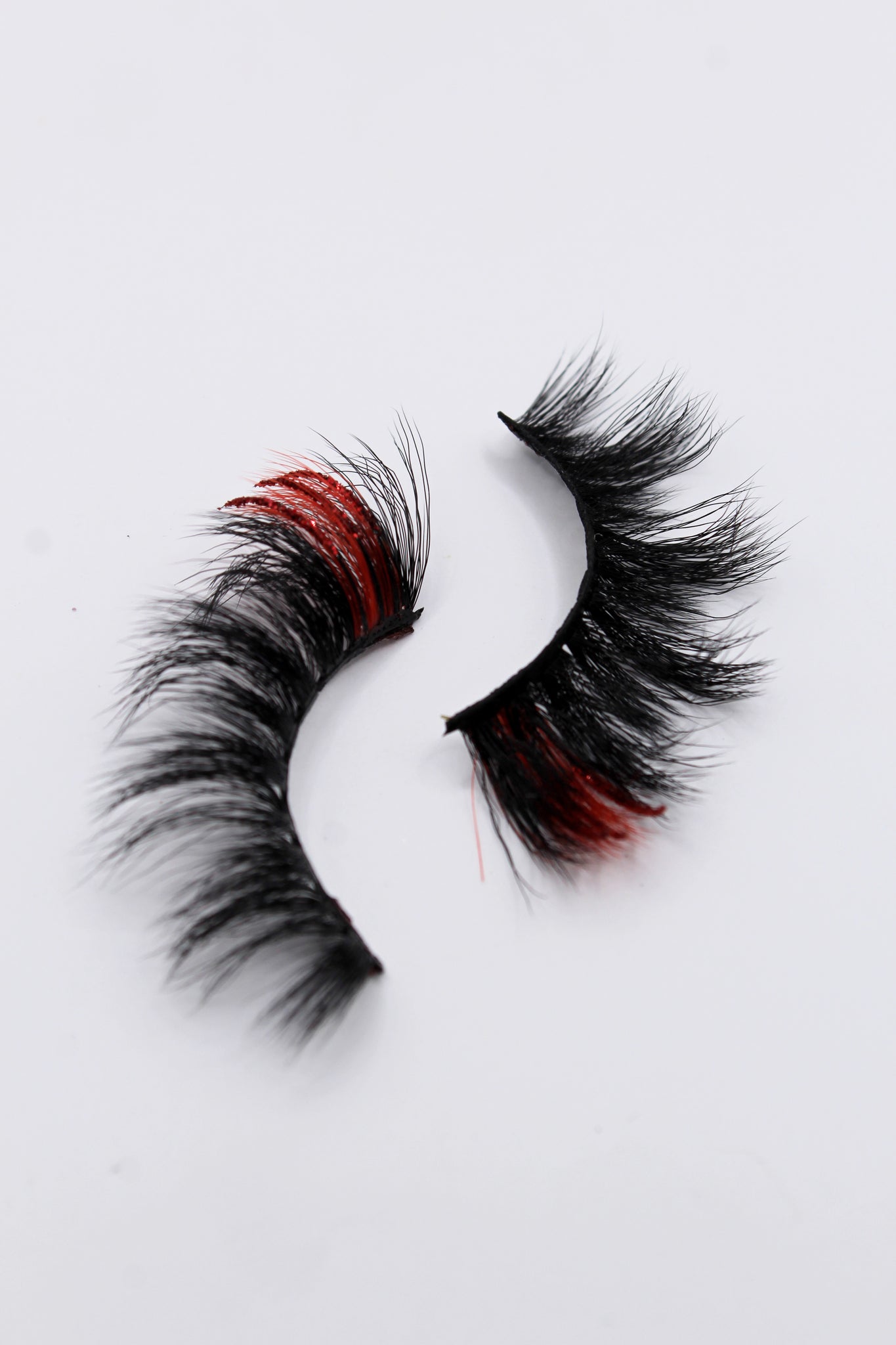 Red colored lash strips with Red glitter strips