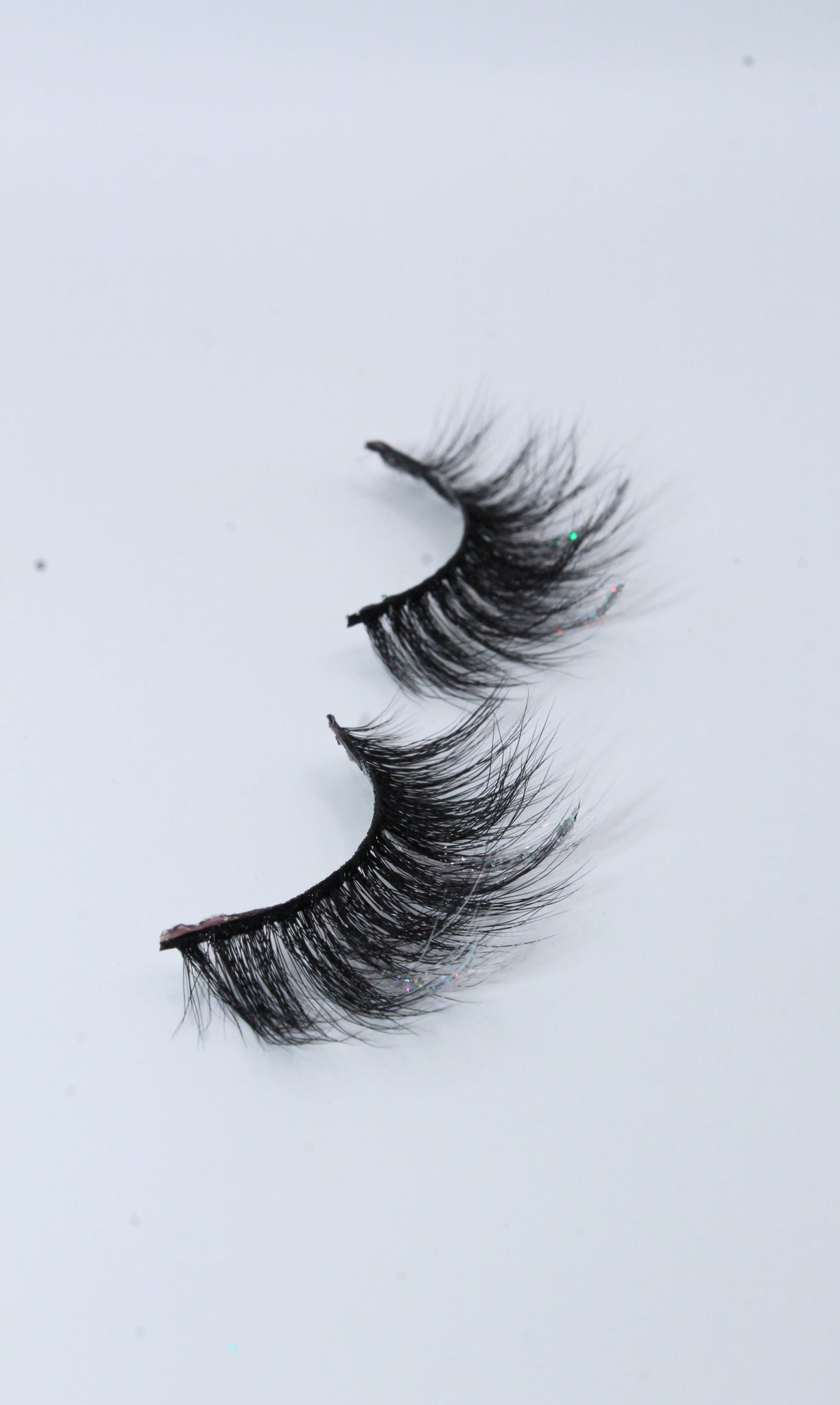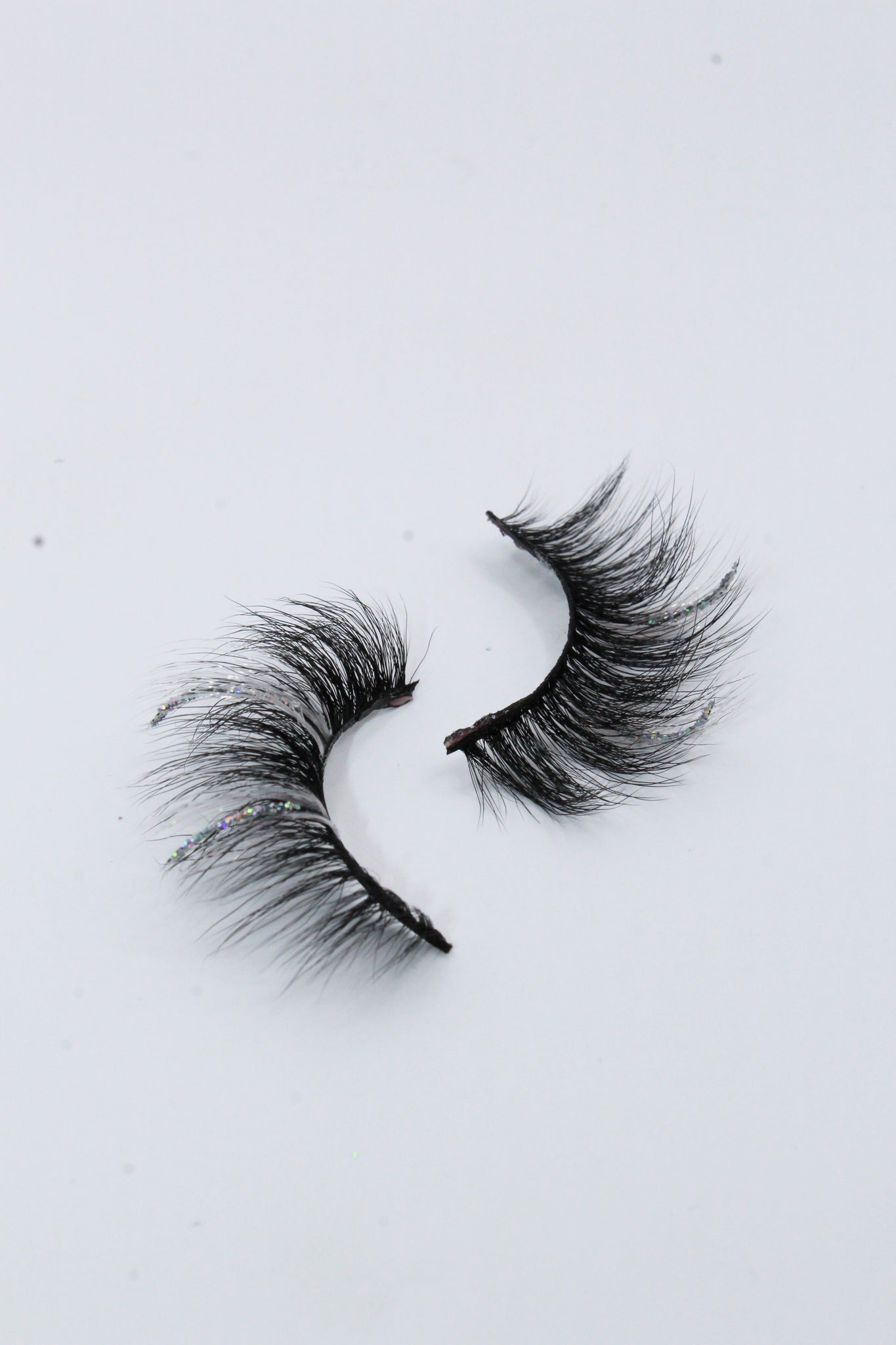 white colored lash strips with silver glitter strips