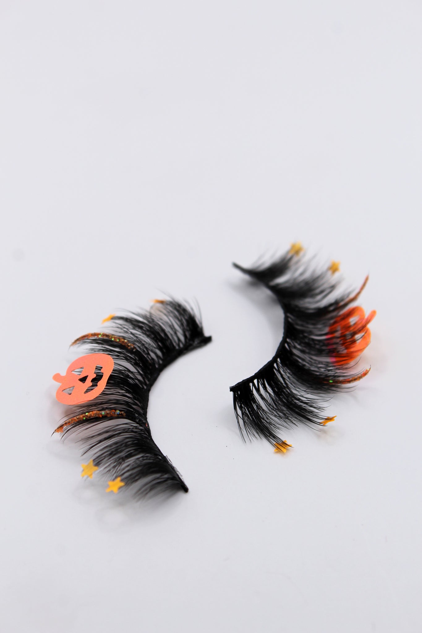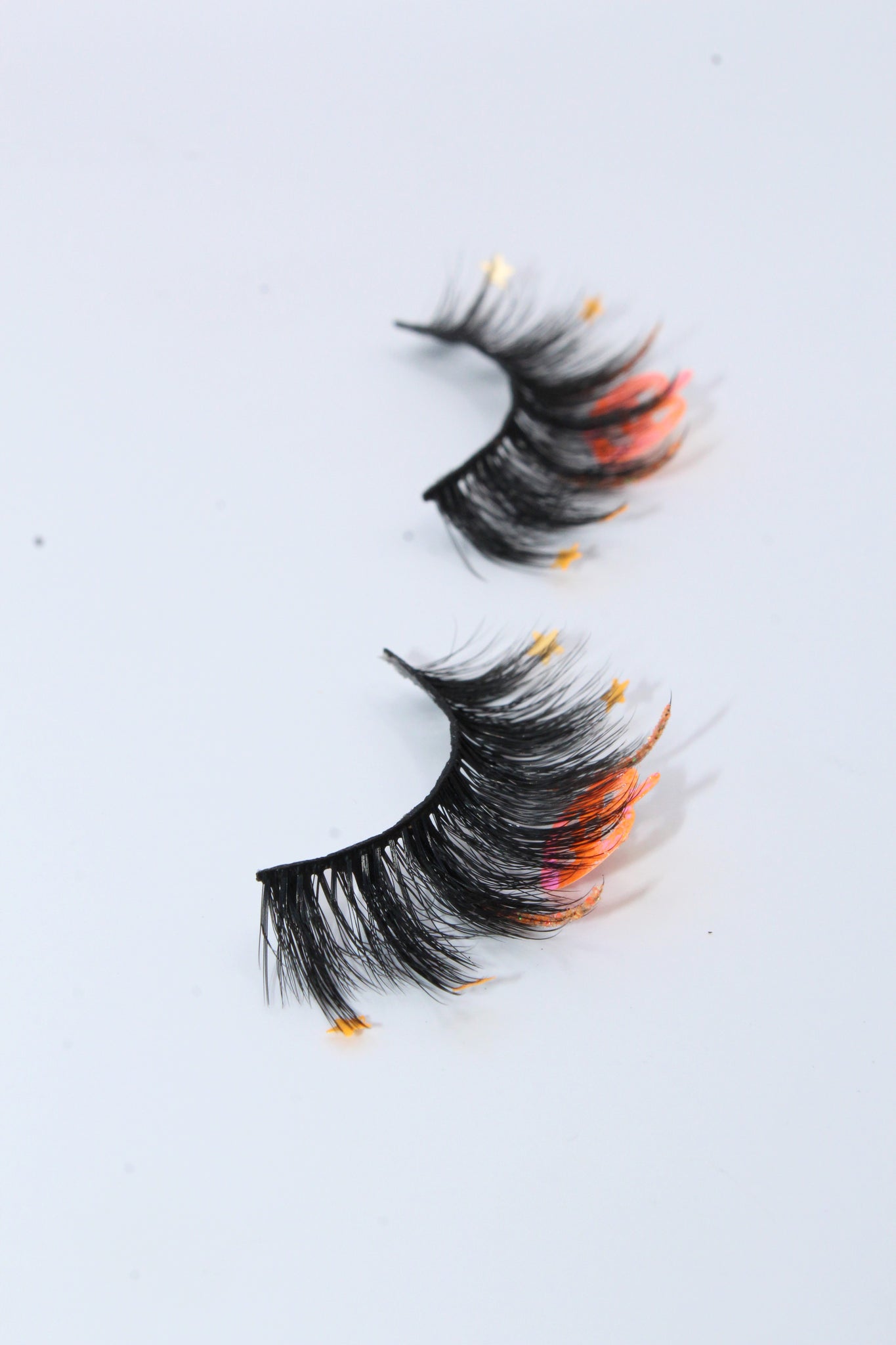 Sequin lashes with orange glitter strips