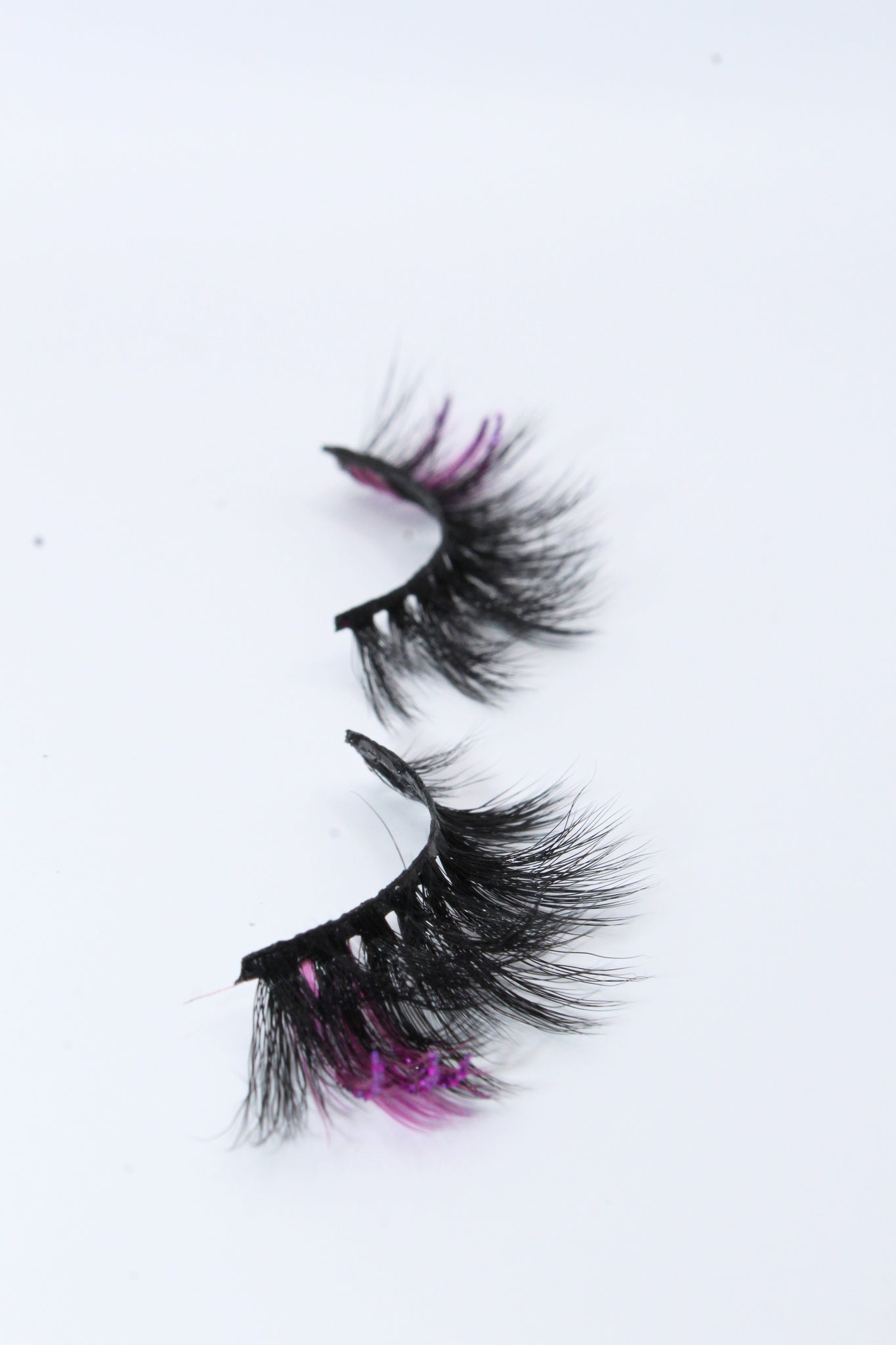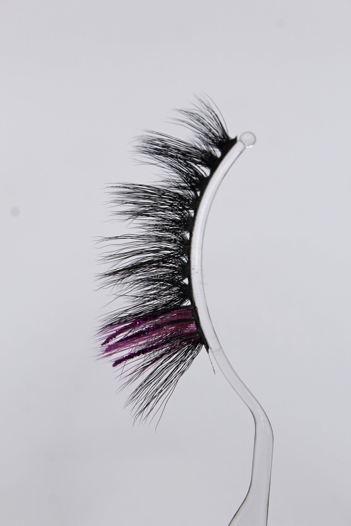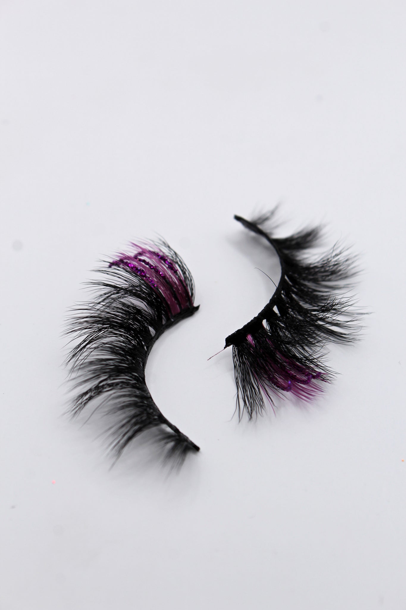 Purple colored lash strips with purple glitter strips